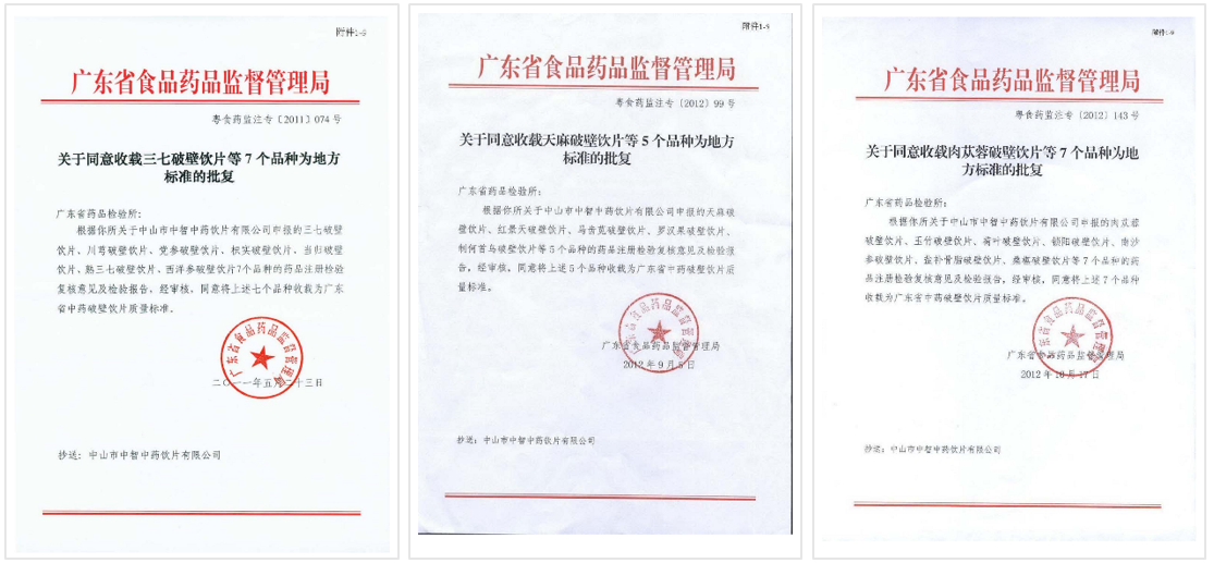 中藥破壁飲片省標(biāo)部分批復(fù)文件