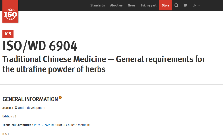 作為提案人申報ISO標(biāo)準(zhǔn)提案“中醫(yī)藥-中藥破壁粉的一般要求”1項,已通過ISO TC249委員會投票正式立項。