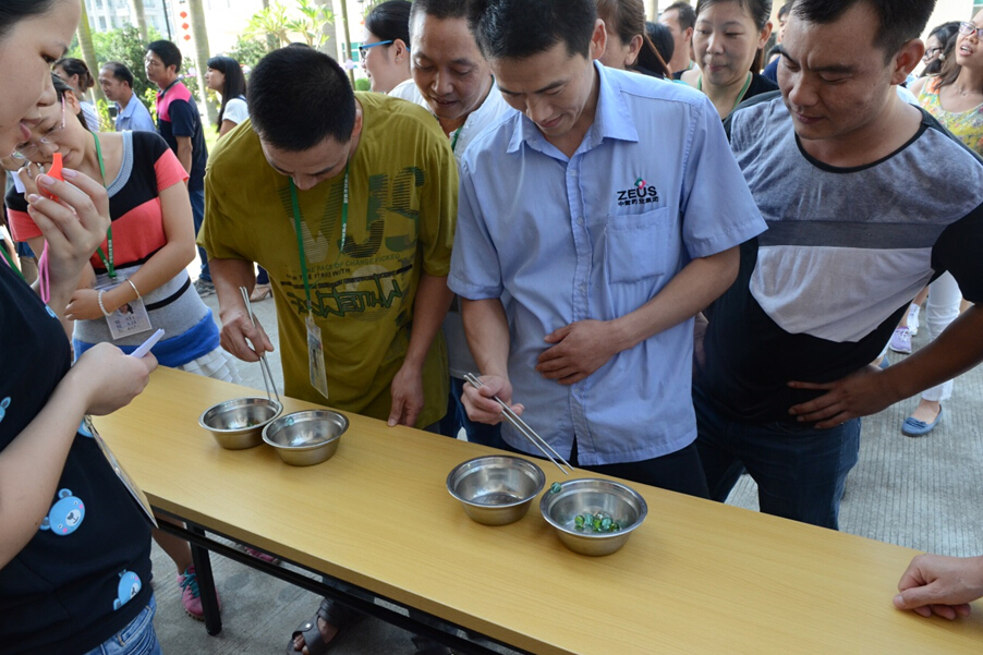 活動中,人頭攢動,熱鬧非凡。每個游戲點(diǎn)都有不少員工來參與?!安聼糁i”、“夾玻璃珠”、“水上吹乒乓球”、“背靠背運(yùn)氣球”、“障礙運(yùn)球”等都受到了員工的熱烈歡迎。