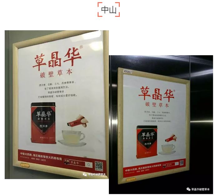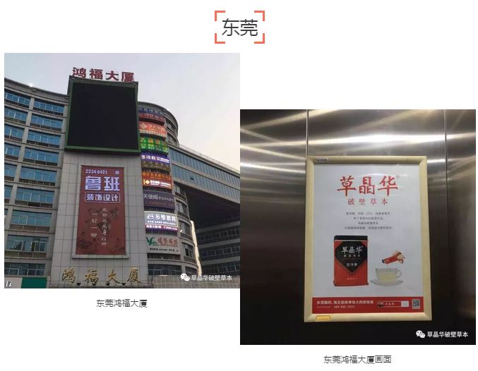 2月18日,深圳、長沙、東莞、中山四城分眾電梯框架海報、樓宇電視等媒介全城覆蓋主流商圈、社區(qū)(如深圳,分眾媒體框架近萬個,草晶華覆蓋80%以上),讓更多城市主流人群了解現(xiàn)代中藥養(yǎng)生文化,讓更多消費者了解“更好吸收,服用便捷”的破壁草本的價值!