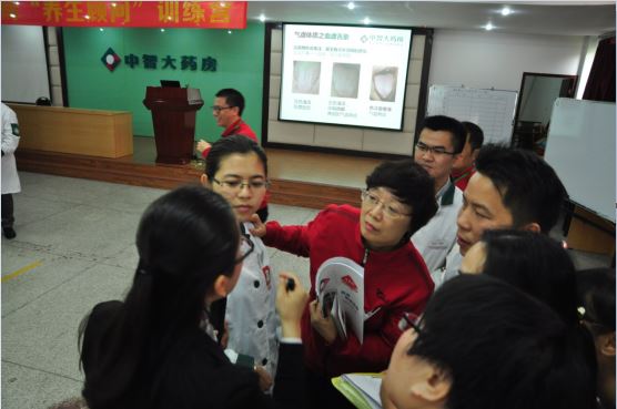 圖五:“草晶華”金牌講師陳潭在指導(dǎo)學(xué)員如何進(jìn)行舌診。
