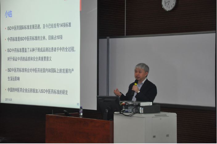 隨后,ISO中醫(yī)藥技術(shù)委員會(huì)中藥材工作組秘書周華副院長作了《ISO中藥國際標(biāo)準(zhǔn)研究現(xiàn)狀》的專題報(bào)告。周院長的精彩報(bào)告展示了中藥ISO標(biāo)準(zhǔn)的現(xiàn)狀,標(biāo)準(zhǔn)研制的原則、過程及維護(hù)的各項(xiàng)技術(shù)研究,讓我們深切的感受到中藥質(zhì)量標(biāo)準(zhǔn)的重要性。