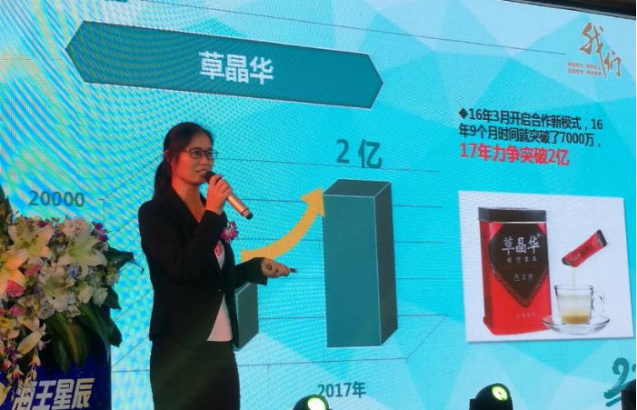 海王星辰營運部副總監(jiān)丁艷姿,在分享品牌商品營運經(jīng)驗時著重說,“十大黃金單品”草晶華破壁草本,在門店形成熱銷的大好趨勢,這種趨勢為團隊提振了信心。據(jù)她介紹,海王星辰在2016年3月引進草晶華破壁草本,9個月時間銷售達到7000萬元。“第一年合作,‘試水’成功,我們整個團隊很受鼓舞、信心十足,今年努力沖刺2億元。”丁艷姿對未來滿懷信心。