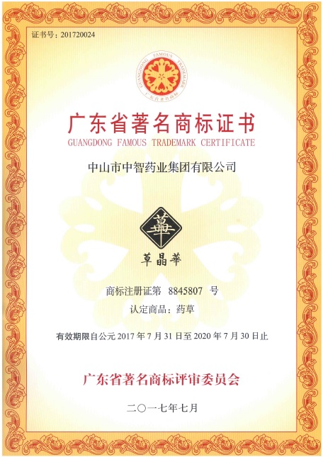 “草晶華”品牌獲認(rèn)定為廣東省著名商標(biāo) !
