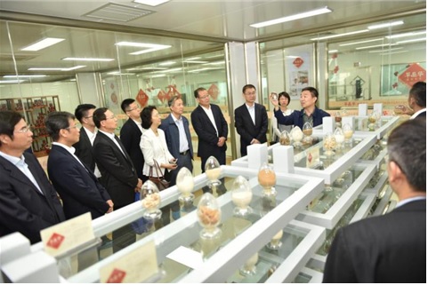 10月23日,中央人民政府駐澳門聯(lián)絡(luò)辦副主任姚堅(jiān)率領(lǐng)澳門政企代表團(tuán)訪問中山,代表團(tuán)一行在市委常委、火炬開發(fā)區(qū)黨工委書記侯奕斌陪同下到我公司進(jìn)行調(diào)研。集團(tuán)公司副總經(jīng)理成金樂熱情接待了代表團(tuán)一行,并陪同參觀了“國家中醫(yī)藥管理局中藥破壁飲片技術(shù)與應(yīng)用重點(diǎn)研究室”,向各位來賓介紹了我司在中藥領(lǐng)域的創(chuàng)新成果,以及同澳門科技大學(xué)建立聯(lián)合實(shí)驗(yàn)室以來所取得的成績,獲得代表團(tuán)的高度贊揚(yáng)。未來我司將在粵港澳大灣區(qū)建設(shè)的大背景下,進(jìn)一步與澳門各機(jī)構(gòu)加強(qiáng)合作,共同融入大灣區(qū)建設(shè),實(shí)現(xiàn)雙贏。